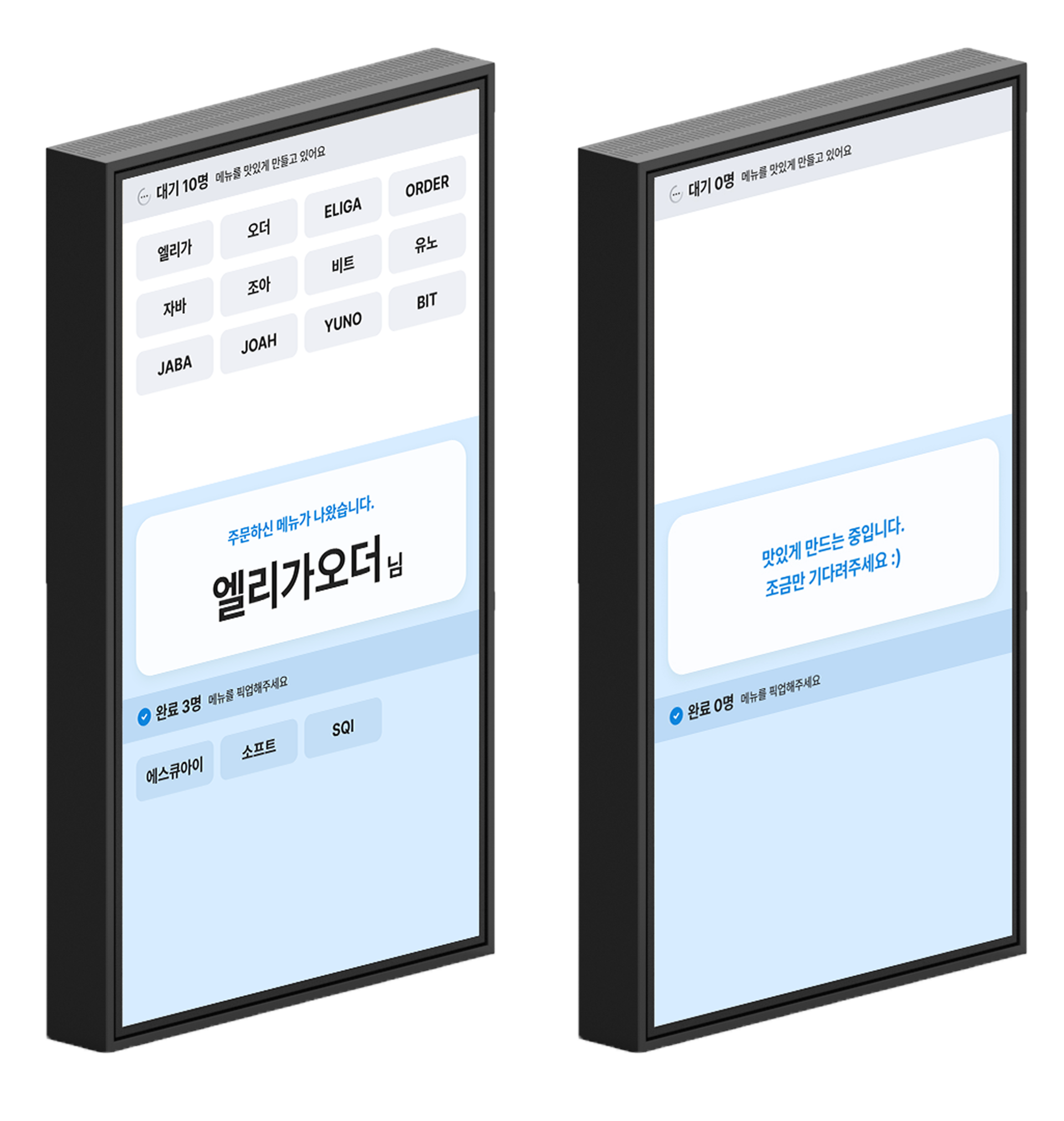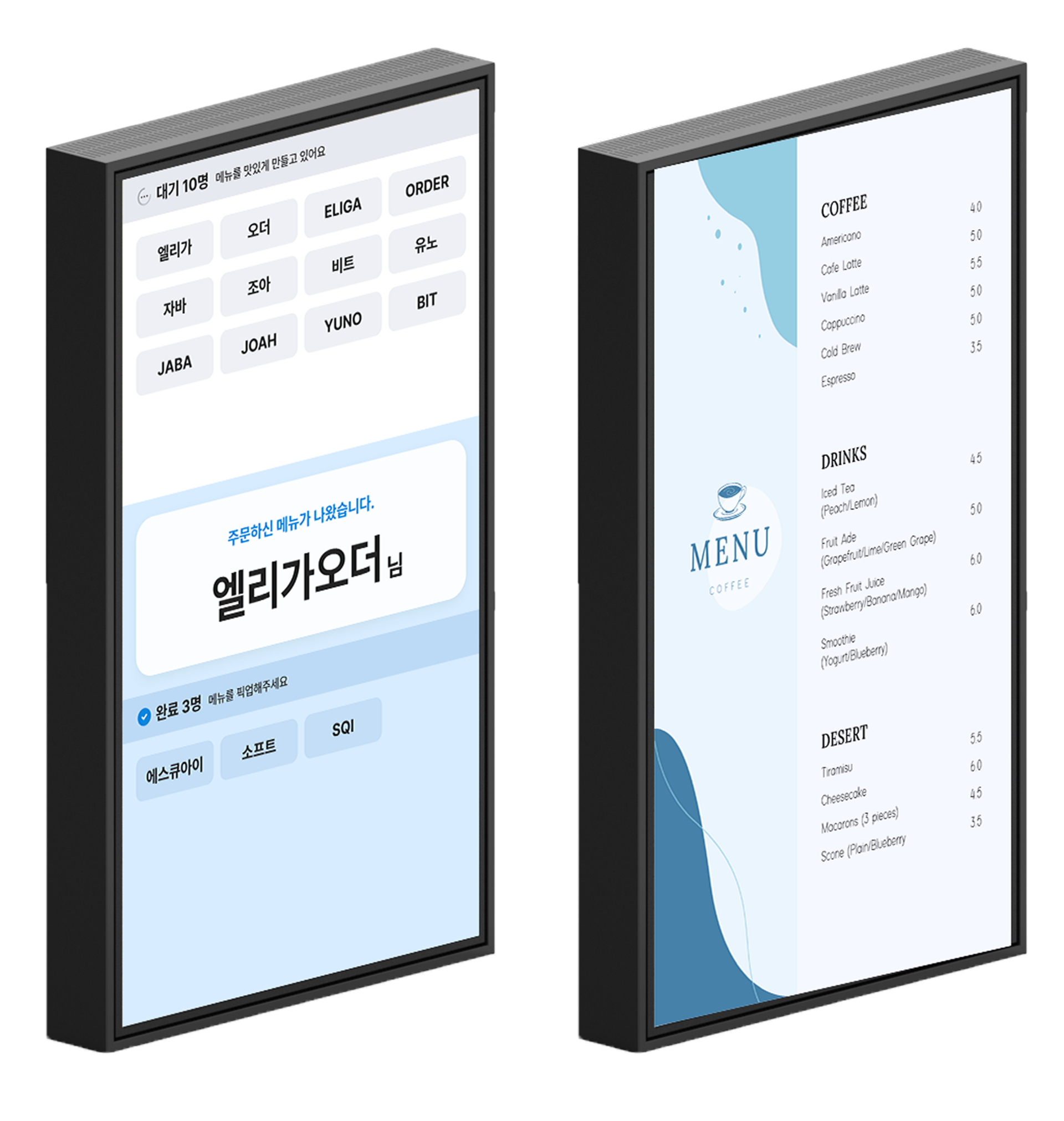 알림이 필요할 땐 픽업보드, 주문이 없을 땐 메뉴보드! 원하는 대로 선택해서 사용할 수 있어요.